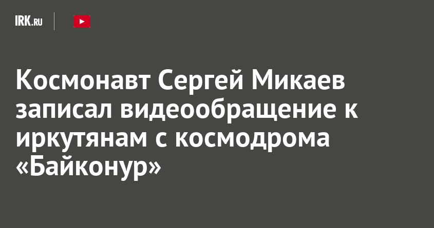 Космонавт Сергей Микаев записал видеообращение к иркутянам с космодрома «Байконур»