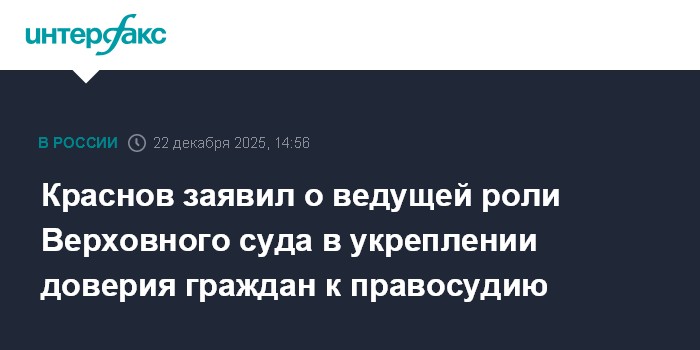 Краснов заявил о ведущей роли Верховного суда в укреплении доверия граждан к правосудию