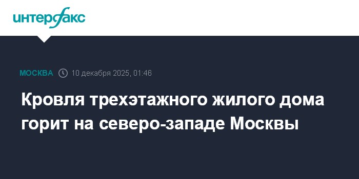Кровля трехэтажного жилого дома горит на северо-западе Москвы