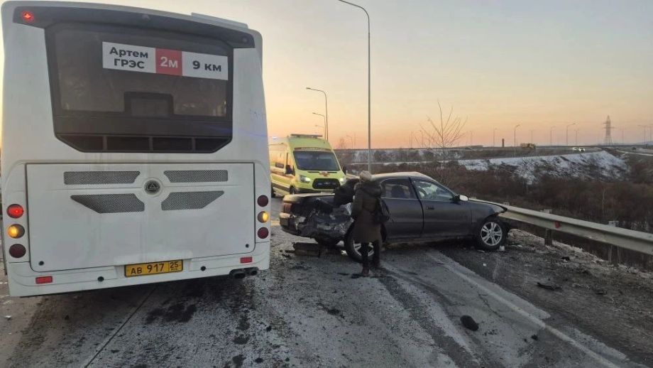 Легковушка вылетела на встречную полосу и протаранила пассажирский автобус в Приморье