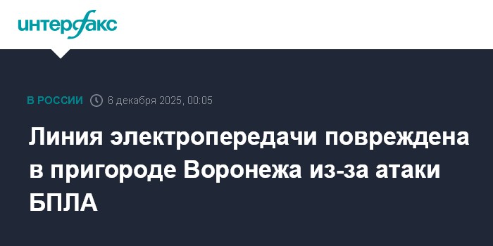 Москва. 6 декабря. INTERFAX.RU - В результате атаки БПЛА на пригород Воронежа пострадала линия электропередачи, сообщил губернатор Воронежской области Александр Гусев.