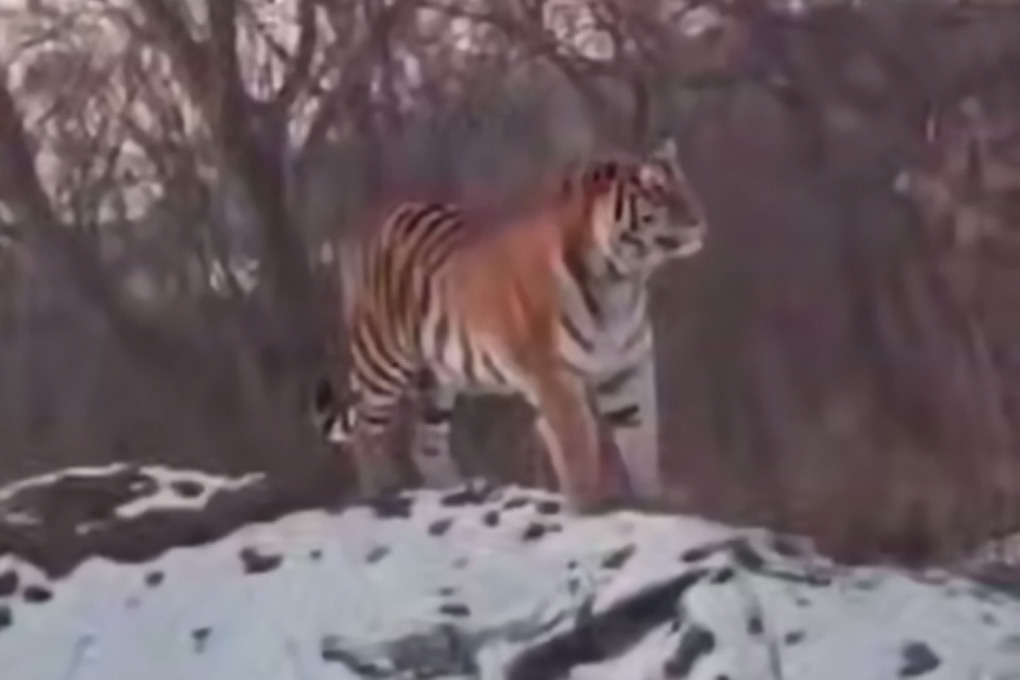Очередная встреча с хищником произошла на трассе, где его случайно заметила семья с маленькой девочкой. Этот момент был заснят на видео, которое быстро распространилось среди местных жителей.