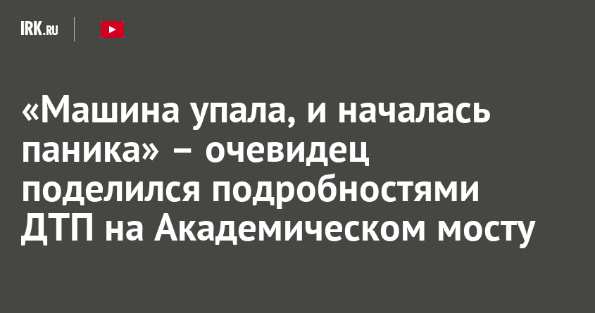 Очевидец ДТП, произошедшего на Академическом мосту 23 сентября, поделился с журналистом IRK.ru подробностями инцидента. По его словам, в момент аварии в салоне находилось около восьми человек.