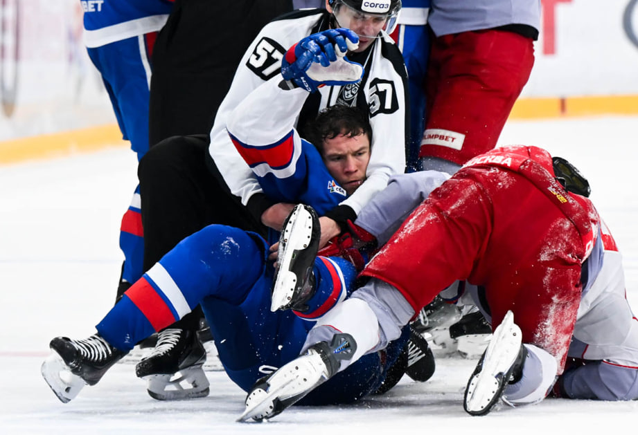 Sport.ru / Хоккей. Матч регулярного чемпионата КХЛ между СКА и "Спартаком" завершился скандалом. Игроки обеих команд устроили драку после финальной сирены.