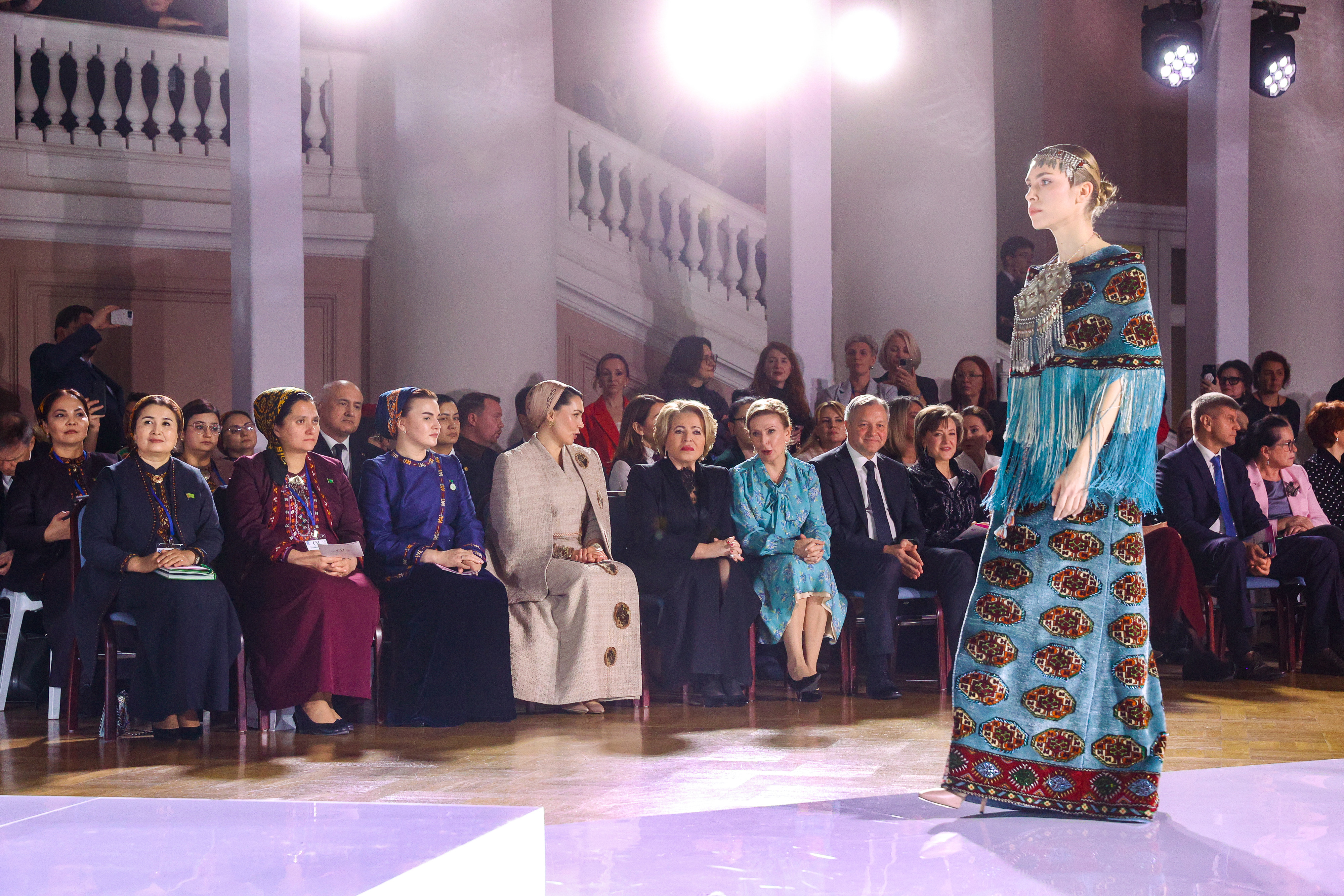 В рамках IV Международного форума «Содружество моды» Председатель Совета Федерации Валентина Матвиенко вместе с вице-президентом Благотворительного фонда по оказанию помощи нуждающимся в опеке детям имени Гурбангулы Бердымухамедова Огулджахан Атабаевой посетила модный показ дизайнеров из России, стран СНГ и дальнего зарубежья.