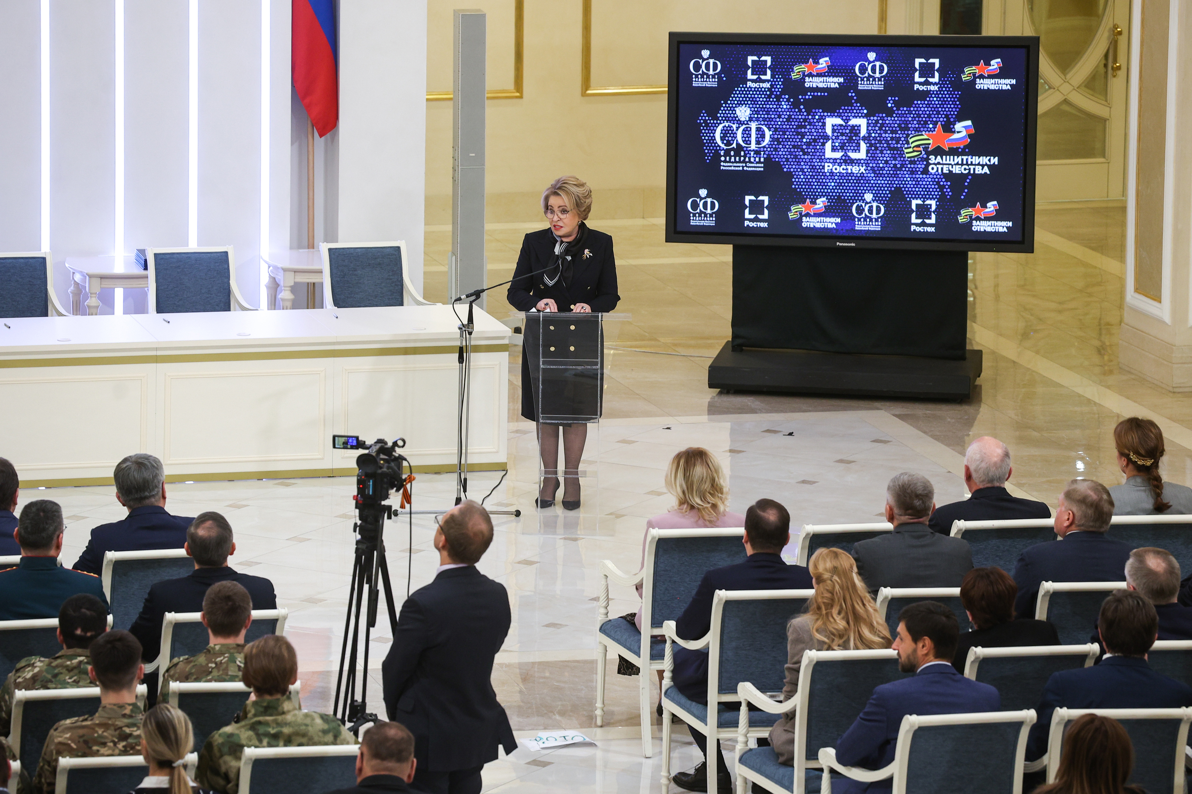 Валентина Матвиенко, Председатель СФОна уточнила, что сегодня подписаны новые соглашения о сотрудничестве в этой сфере между государственной корпорацией «Ростех», фондом «Защитники Отечества» и рядом регионов: Луганской Народной Республикой, республиками Бурятия и Коми, Архангельской, Тульской областями, Кемеровской областью-Кузбассом, а также Еврейской автономной областью.
