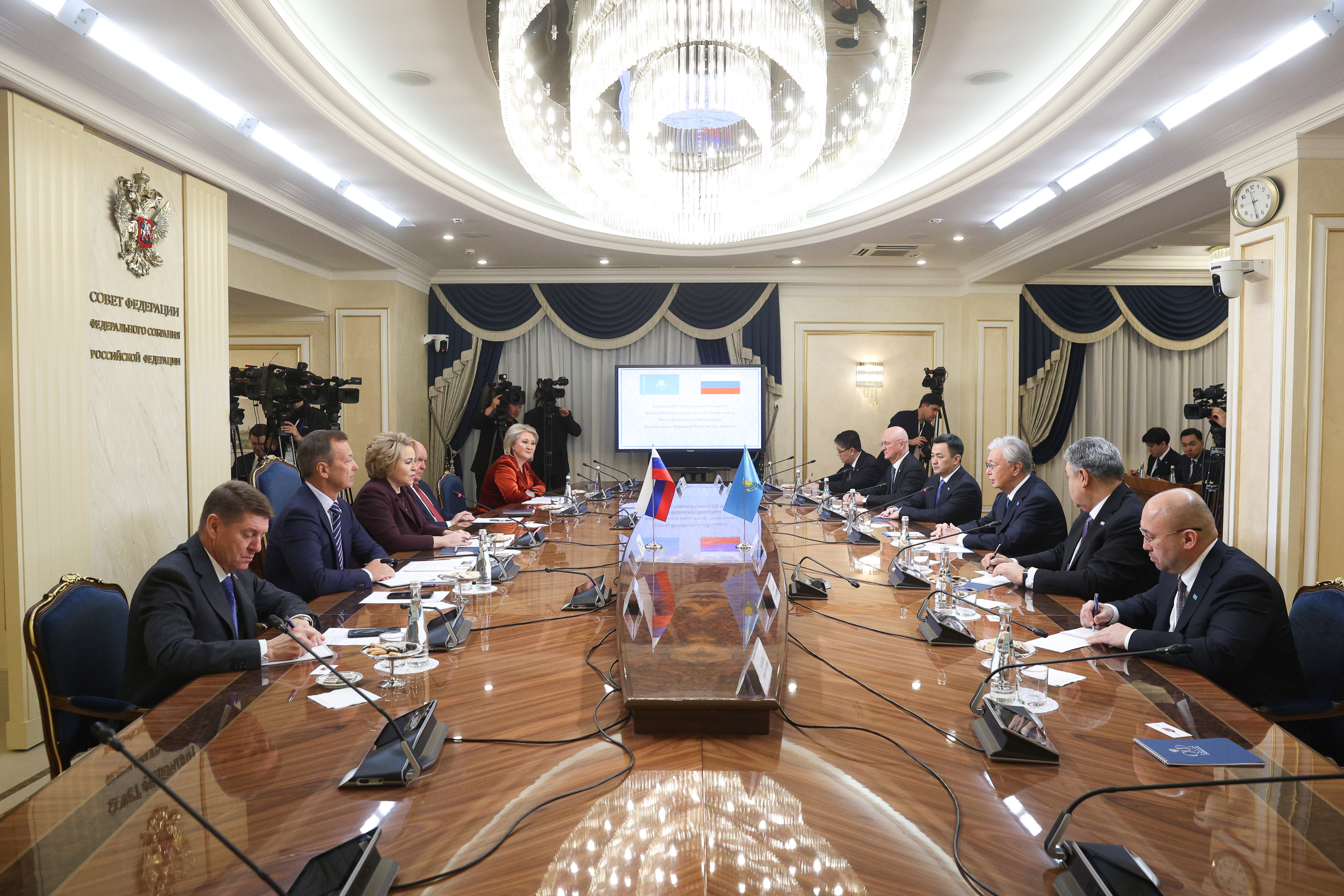 Валентина Матвиенко, Председатель СФКасым-Жомарт Токаев отметил, что с глубоким уважением относится к спикеру СФ Валентине Матвиенко и с удовольствием посетил Совет Федерации.
