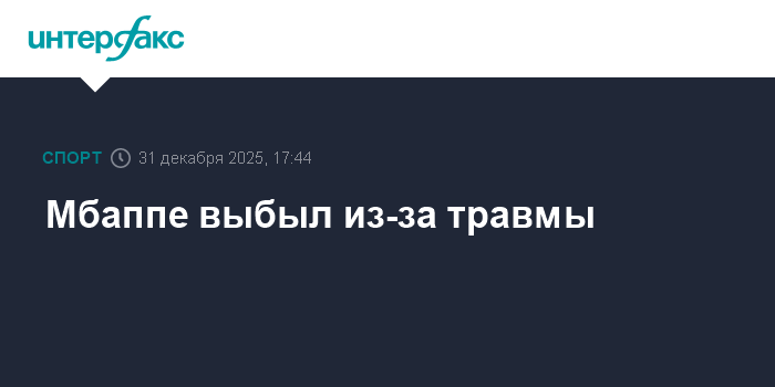 Москва. 31 декабря. INTERFAX.RU - Нападающий "Реала" Килиан Мбаппе пропустит часть игрового времени из-за травмы, сообщается на сайте испанского футбольного клуба.