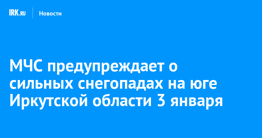 Сильные снегопады ожидаются в южных районах Иркутской области 3 января. О неблагоприятных погодных условиях жителей предупреждает ГУ МЧС России по Иркутской области. На дорогах снежный накат, гололедица.