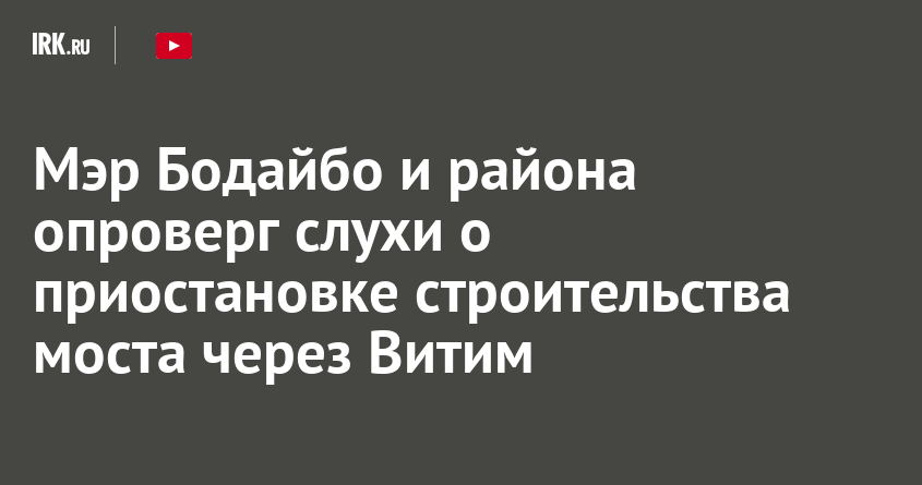 Мэр Бодайбо и района опроверг слухи о приостановке строительства моста через Витим