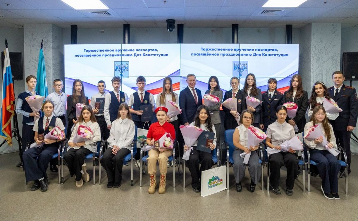 Мэр Сергей Надсадин торжественно вручил паспорта двадцати юным жителям Южно-Сахалинска. Вручение главой областного центра паспортов молодым южносахалинцам, показавшим особые успехи в учебе, спорте и других сферах деятельности в День Конституции давно уже стало доброй традицией. Торжественная церемония прошла в историческом парке "Россия — моя история".