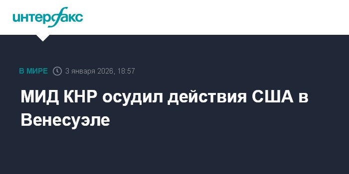 "Китай глубоко шокирован и решительно осуждает вопиющее использование силы США в отношении суверенного государства и действия против его президента", - приводятся в сообщении МИД Китая в соцсети X слова неназванного представителя ведомства.