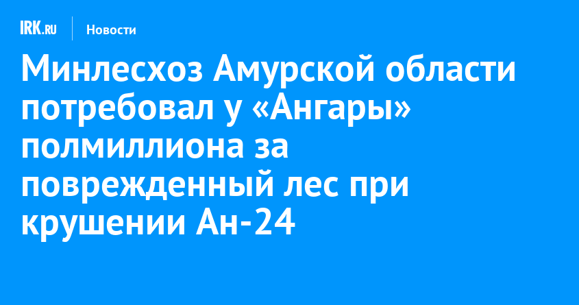 Министерство лесного хозяйства и пожарной безопасности Амурской области подало иск в Арбитражный суд Иркутской области к авиакомпании «Ангара». Ведомство требует взыскать 535 004 рубля в качестве возмещения ущерба, причиненного лесному фонду в результате авиакатастрофы. Об этом сообщили в пресс-службе Арбитражного суда Иркутской области.