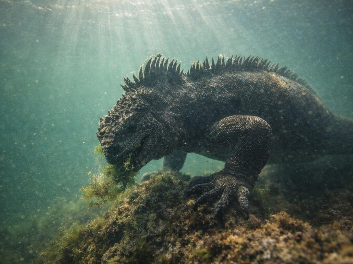 Как морские игуаны добывают пищу и приспосабливаются к средеОсновой рациона являются водоросли, растущие на подводных скалах. Крупные игуаны ныряют глубже, цепляясь когтями за камни и пережидая волны, а мелкие кормятся ближе к берегу, выбирая прибрежные лужи. Поскольку они потребляют много соли, организм выводит её через особые железы, и избыток соли игуаны выбрасывают резким выдохом.