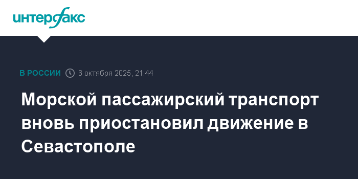 Москва. 6 октября. INTERFAX.RU - В Севастополе приостановили движение морского пассажирского транспорта второй раз за день, сообщает дирекция по развитию дорожно-транспортной инфраструктуры города в понедельник вечером.