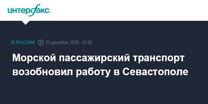 Москва. 23 декабря. INTERFAX.RU - Движение морского пассажирского транспорта в Севастополе возобновилось во вторник днем после приостановки, сообщила дирекция по развитию дорожно-транспортной инфраструктуры города.