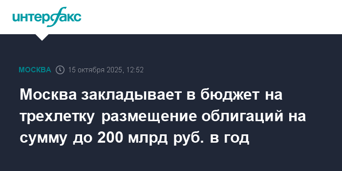 Москва закладывает в бюджет на трехлетку размещение облигаций на сумму до 200 млрд руб. в год