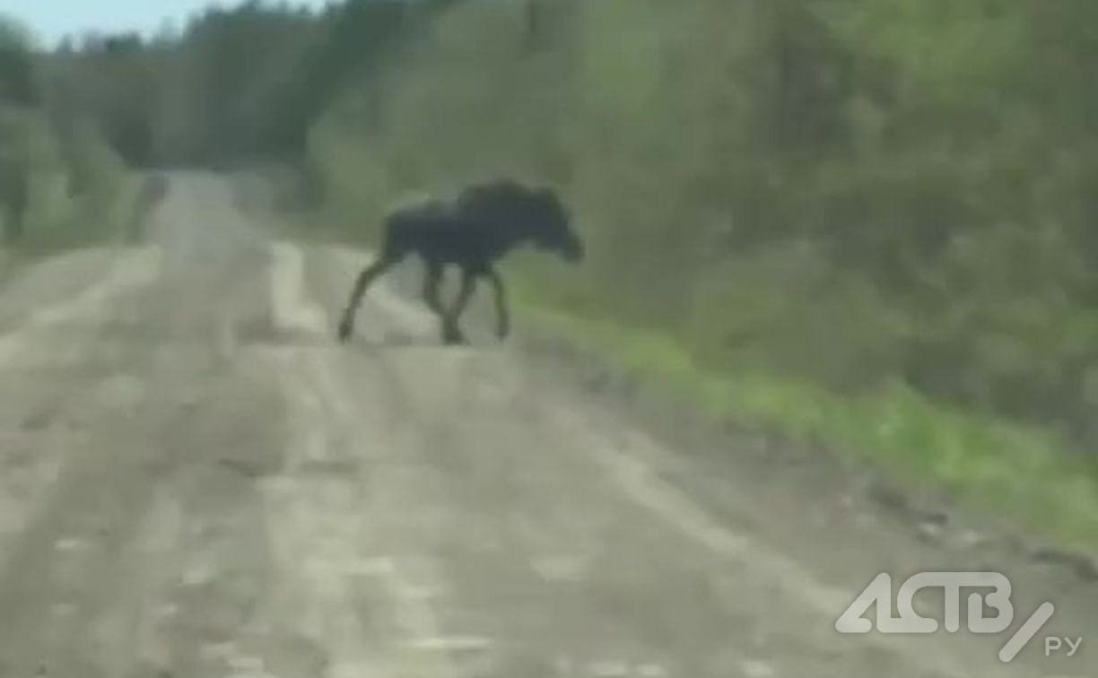 Очередную встречу с диким лосем запечатлели сахалинцы. В соцсетях распространили кадры животного, выбежавшего на дорогу в Поронайском районе.