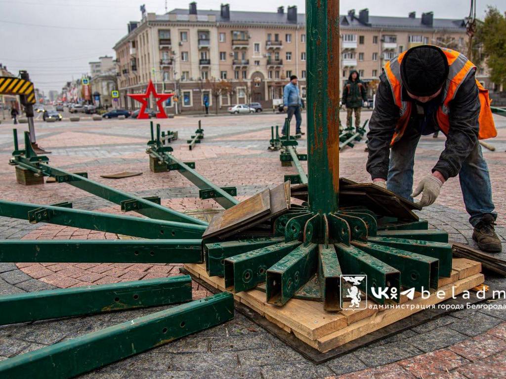 На Соборной площади Белгорода устанавливают новогоднюю ёлку