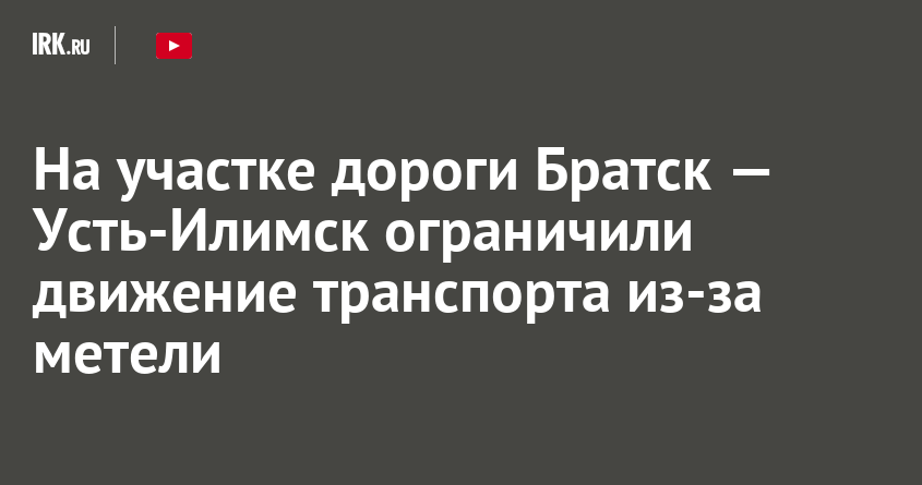 27 декабря на участке дороги Братск — Усть-Илимск с 73 по 245 километр в Усть-Илимском районе ограничили движение транспорта. Причина — ухудшение погодных условий.