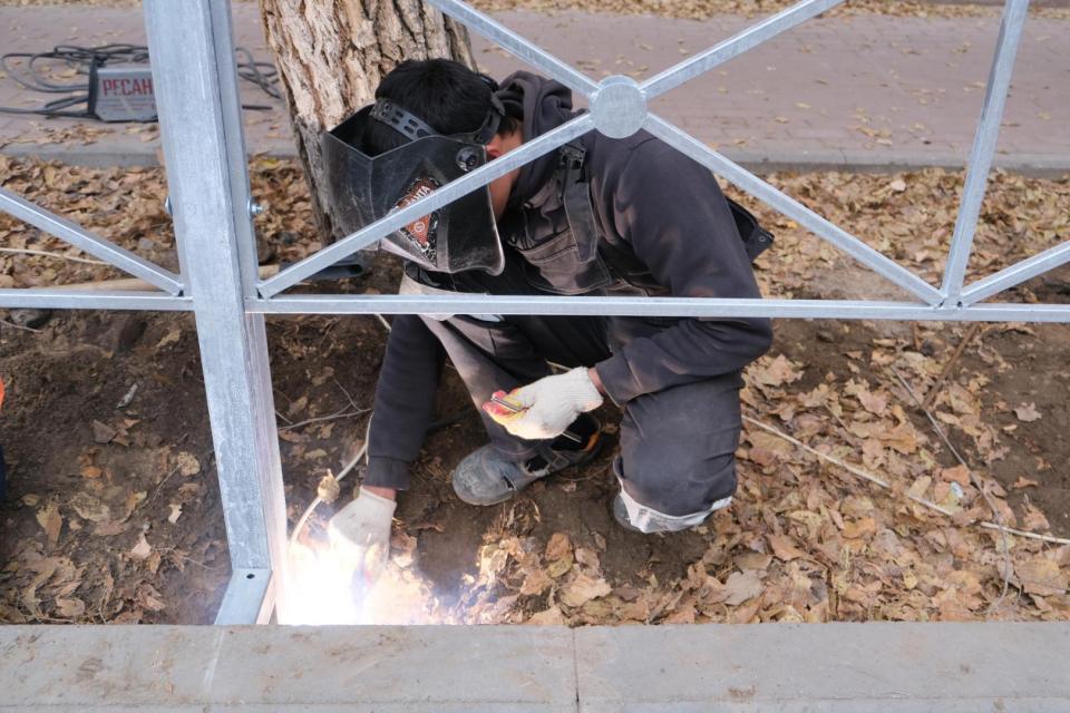 Леерное ограждение планируется установить на протяжении 400 метров. Большая часть работ по монтажу и соединению элементов с помощью сварки уже выполнена. Осталось залить бетоном основания, чтобы укрепить и сделать устойчивыми конструкции.
