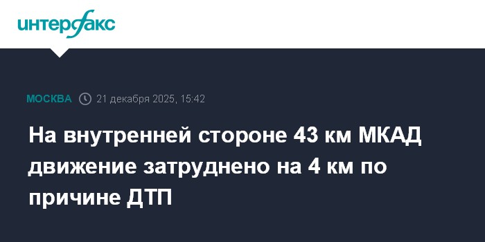 На внутренней стороне 43 км МКАД движение затруднено на 4 км по причине ДТП