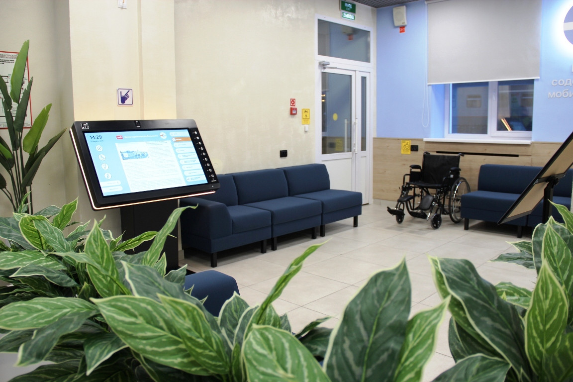 Рядом с зоной ожидания размещён информационный видеотерминал, доступный для инвалидов-колясочников. С его помощью пассажиры могут получить сведения о маршрутах, услугах вокзала и доступности инфраструктуры, а также связаться со специалистом по видеосвязи, в том числе с использованием русского жестового языка.
