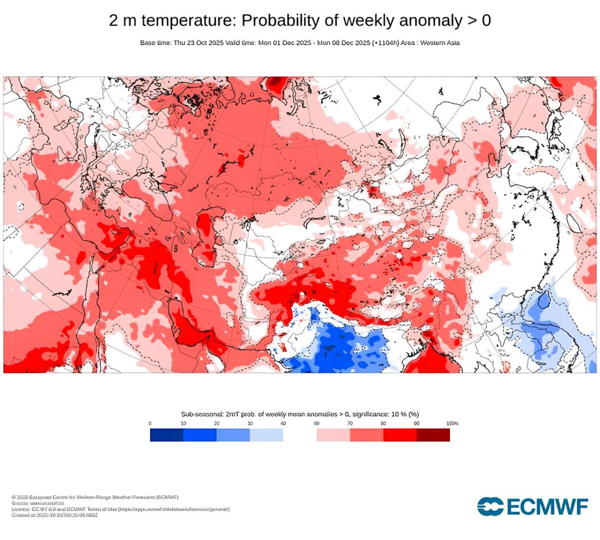В паблике «Любительская метеорология в Кирове» представили предварительный вероятностный прогноз ансамбля ECMWF на первую декаду декабря. Так, вероятность тепла на Европейской территории России, в том числе и Кировской области, а также Урала оценивается в 70-80%.