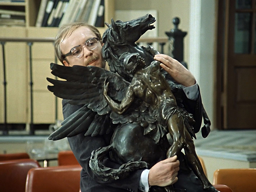 Также одной из самых известных фраз про лошадь стало высказывание Новосельцева в картине «Служебный роман» (1977, 6+). Главный герой держал в руках тяжёлую статую крылатой лошади и в один момент, не выдержав, произнёс в сердцах: