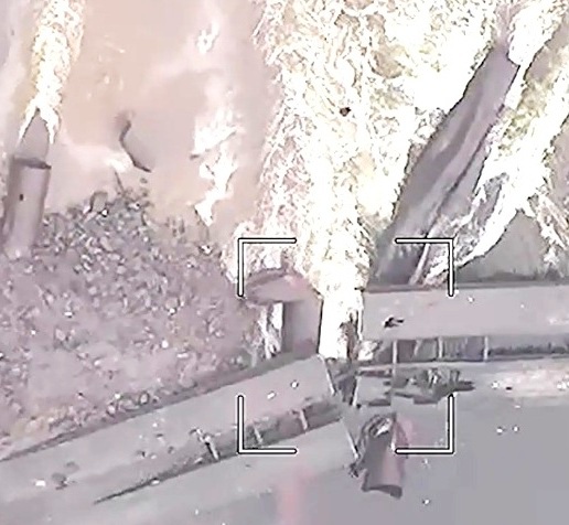 Вначале по колейному мосту ударили несколько дронов-камикадзе, они попадали в сталь конструкции и проделывали в ней внушительные дыры. Даже после этого проезд автомобильной техники был бы уже затруднен.