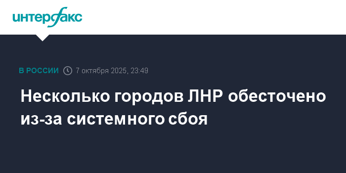 Москва. 7 октября. INTERFAX.RU - Несколько городов Луганской народной республики (ЛНР) остался без электроснабжения из-за системного сбоя, сообщили в правительстве региона.