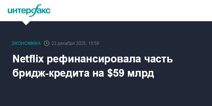 Москва. 22 декабря. INTERFAX.RU - Netflix Inc. частично рефинансировала бридж-кредит в размере $59 млрд, привлеченный для сделки по покупке активов Warner Bros. Discovery Inc. (WBD).