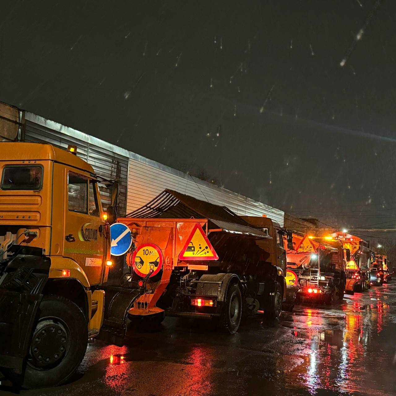 Этой ночью, 15 ноября, в Великом Новгороде и Новгородском округе подрядная дорожная организация «Солид» патрулировала обслуживаемые участки из-за опасности гололёда.