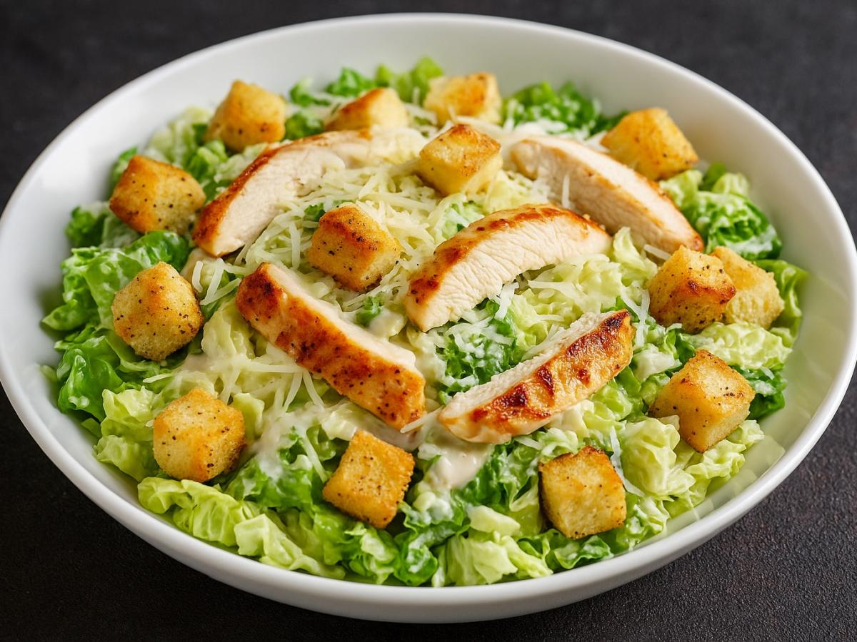Можно ли приготовить салат заранее?Можно подготовить компоненты заранее: обжарить курицу и бекон, сварить яйца, вымыть и обсушить листья. Собирать салат и добавлять заправку лучше непосредственно перед подачей, а сухарики держать отдельно.