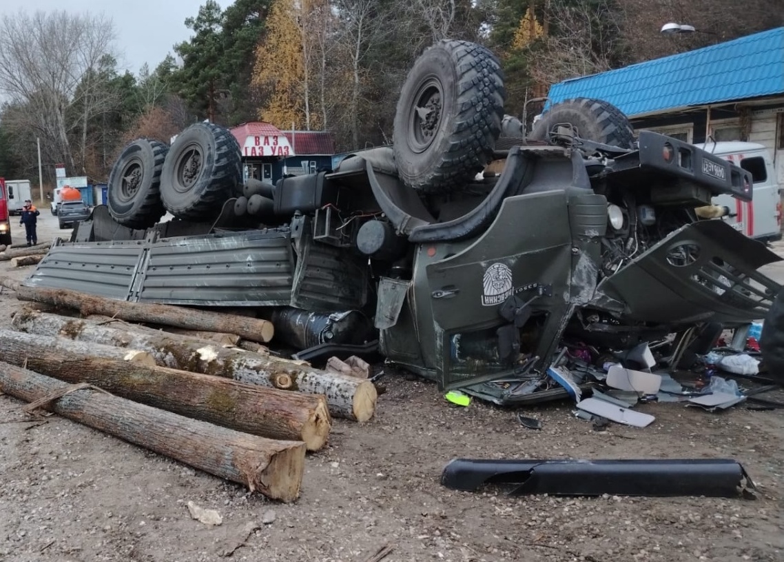 Обнародованы фото с места ДТП с перевернувшимся КамАЗом в Пензенской области