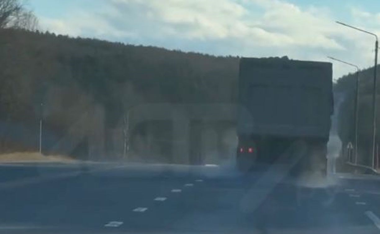 В редакцию astv.ru очевидцы прислали видео с большегрузом, который, по их словам, передвигался по трассе Южно-Сахалинск – Корсаков без номерных знаков и с нарушением правил дорожного движения.