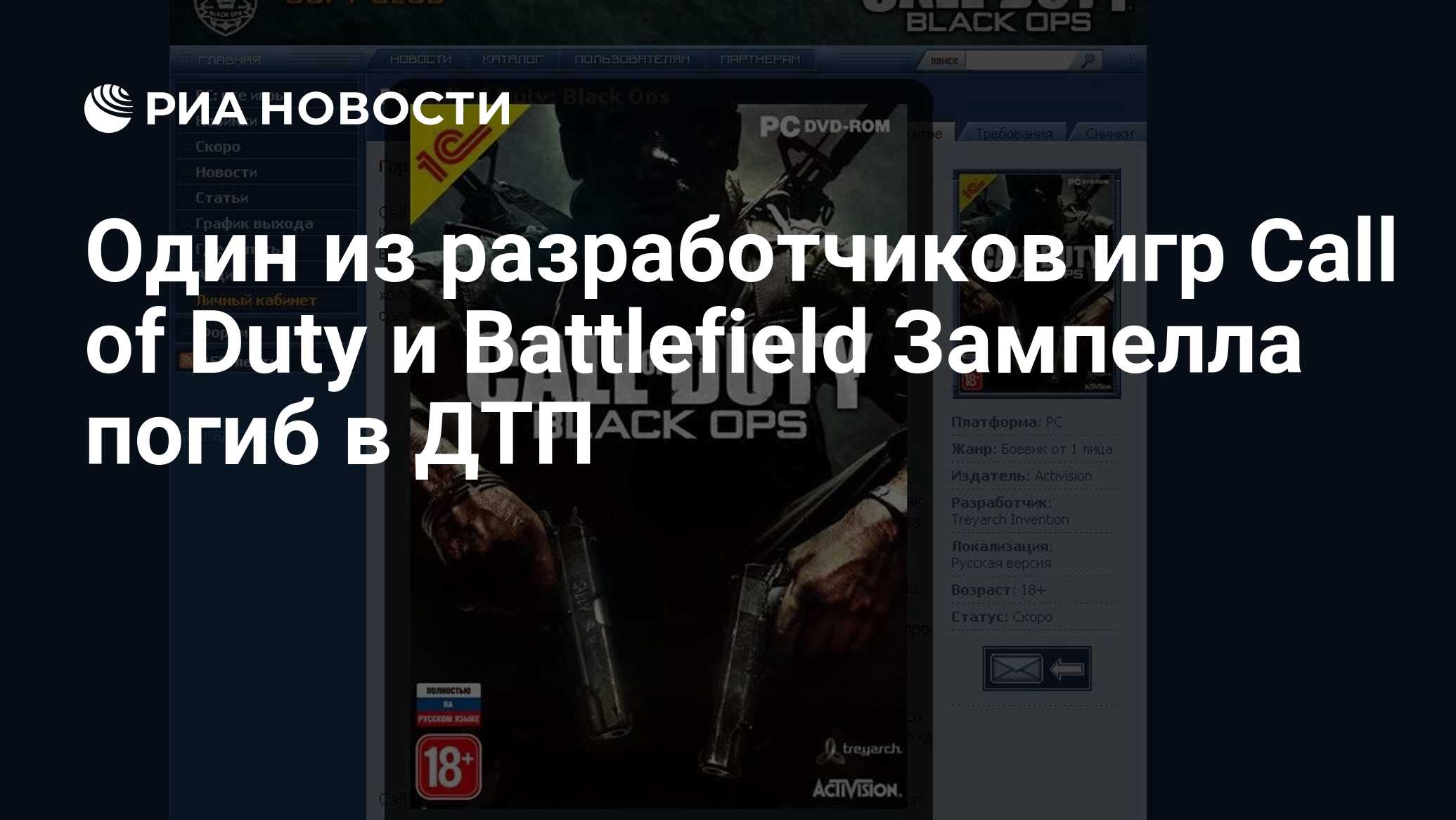 МОСКВА, 22 дек - РИА Новости. Один из разработчиков серий видеоигр Call of Duty и Battlefield Винс Зампелла погиб в ДТП в американском штате Калифорния в возрасте 55 лет, сообщает телеканал NBC4. "Разработчик видеоигр Винс Зампелла, чьи студии создали несколько самых продаваемых в мире видеоигр, погиб в воскресенье днем (по местному времени - ред.) в результате аварии на шоссе Angeles Crest в Южной Калифорнии", - сообщает телеканал. Согласно публикации, Зампелла возглавлял студию Respawn Entertainment, а до этого был гендиректором Infinity Ward, создавшей успешную франшизу Call of Duty. Также отмечается, что ранее он возглавлял команду студии EA в городе Плайя-Виста, работавшей над серией Battlefield. По данным дорожно-патрульных служб, авария произошла к северу от Лос-Анджелеса: автомобиль съехал с дороги, врезался в бетонный барьер, в результате чего пассажира выбросило, а водитель оказался заблокирован в загоревшейся машине. Водитель погиб на месте, а пассажир скончался в больнице, указывает телеканал.