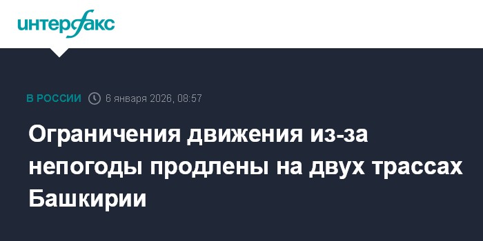 Ранее сообщалось, что в связи с ухудшением погоды, с вечера 5 января, были введены ограничения движения на 11 участках автодорог Башкирии. Для оказания помощи водителям, на трассах было развернуто 4 мобильных пункта обогрева и стационарный пункт временного размещения в Архангельском районе.