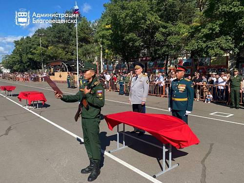 «Сегодня вы делаете самый важный шаг в своей жизни — даете клятву на верность Отечеству. Пусть в ваших сердцах всегда горит огонь любви к Родине, а в учебе вам сопутствует упорство и жажда знаний. Берегите честь училища, будьте достойными наследниками славы рокоссовцев, поддерживайте друг друга в трудную минуту и помните: весь город Благовещенск верит в вас и гордится вами», — подчеркнул градоначальник.