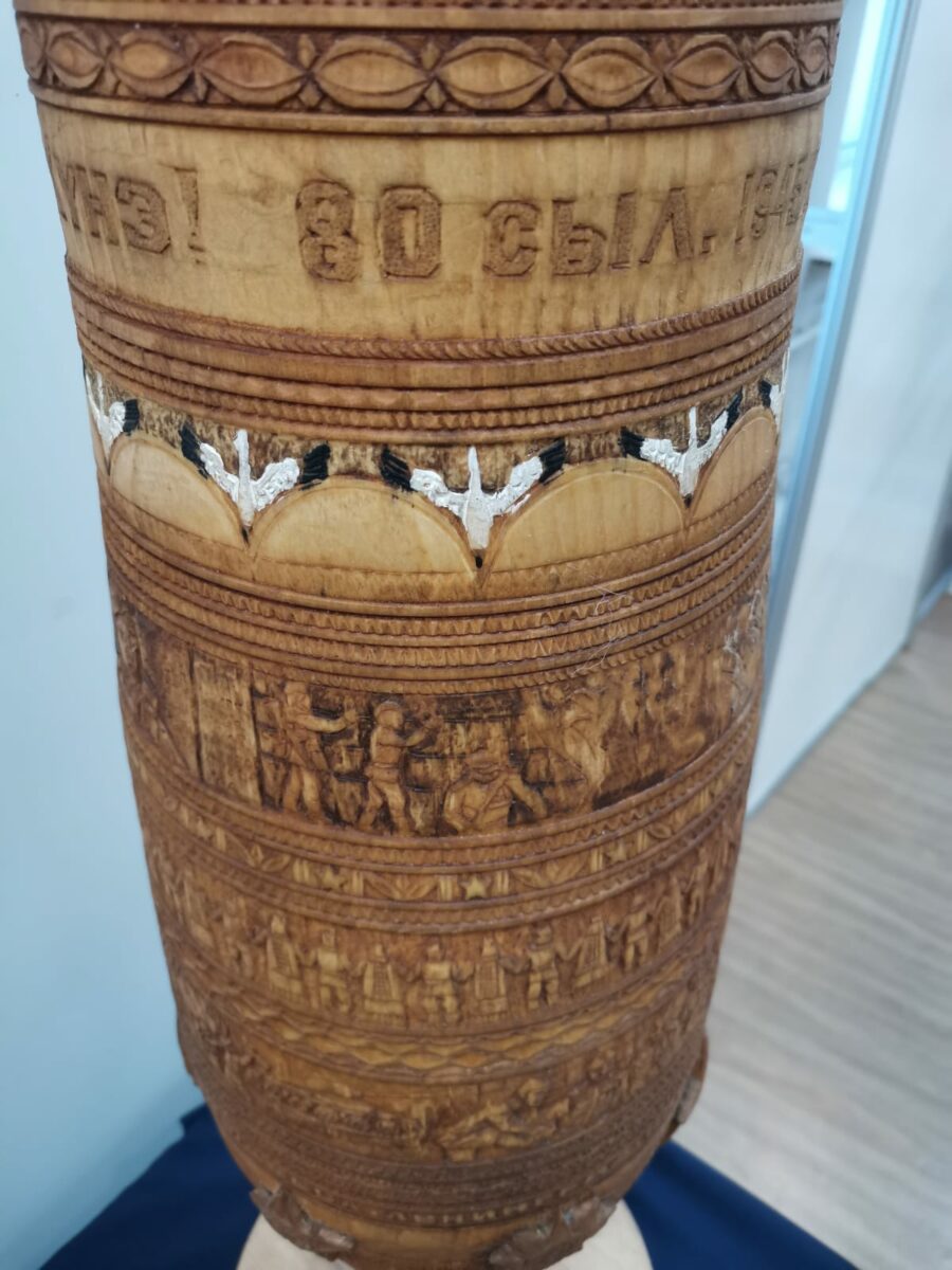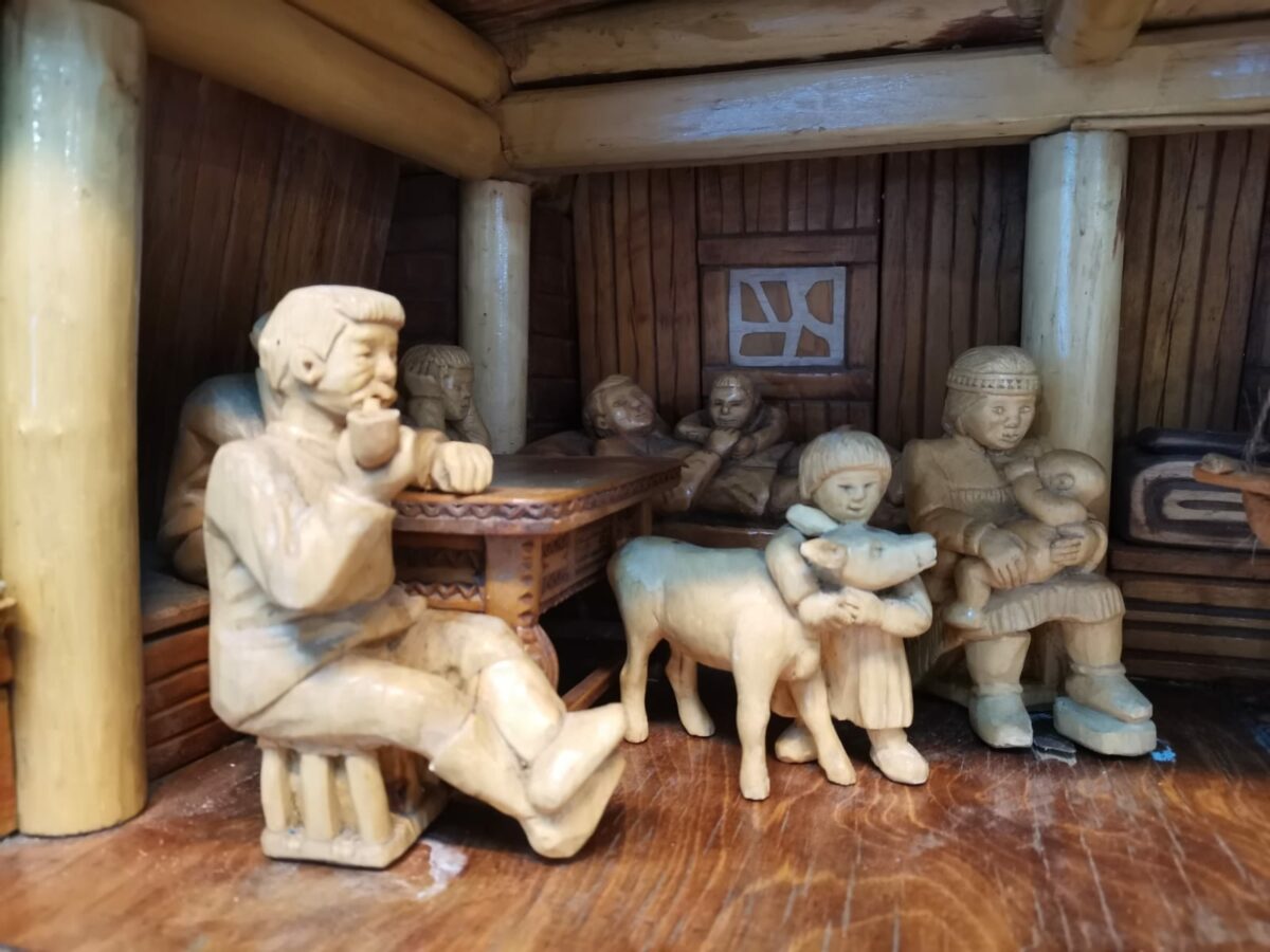 На выставке представлена цельная композиция «Сказание Олонхо у богатого Тойона», которую мастер вырезал в течение 2007 и 2008 годов.