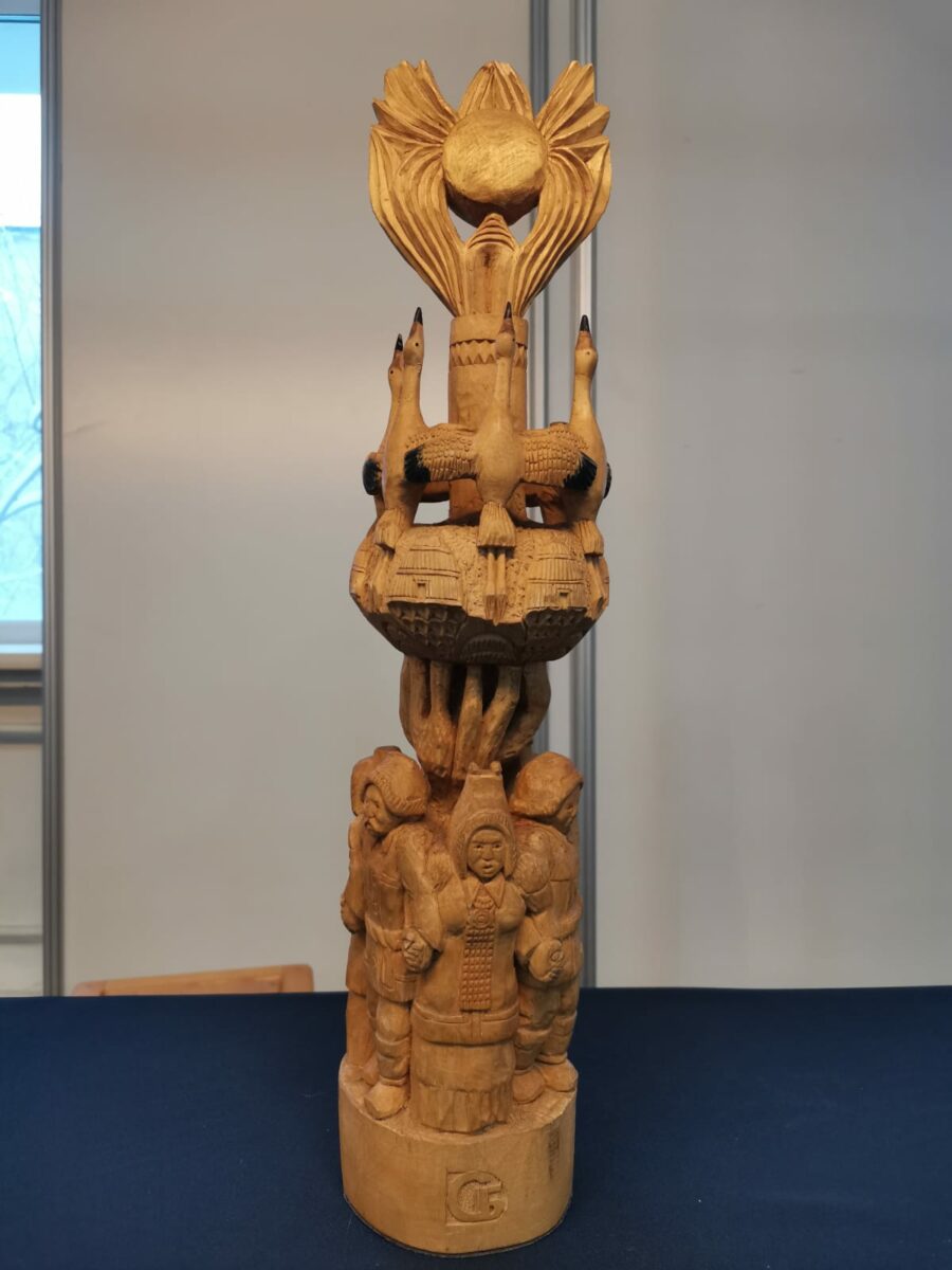 Скульптуры Василия Спиридонова наполнены культурной самобытностью народа саха и рассказывают сюжеты из древнего эпоса Олонхо.