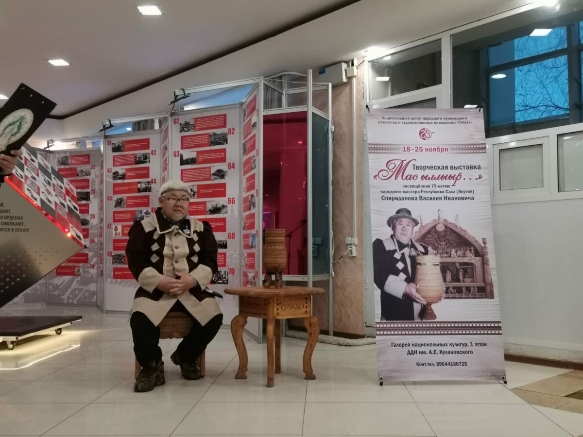 18 ноября Национальный центр «Симэх» открыл в Якутске выставку деревянных скульптур «Мас ыллыыр…» к 75-летию народного мастера республики Василия Спиридонова. Представлено свыше ста фигур и традиционной утвари, большая часть из которых – новые работы, впервые выставленные для публики.