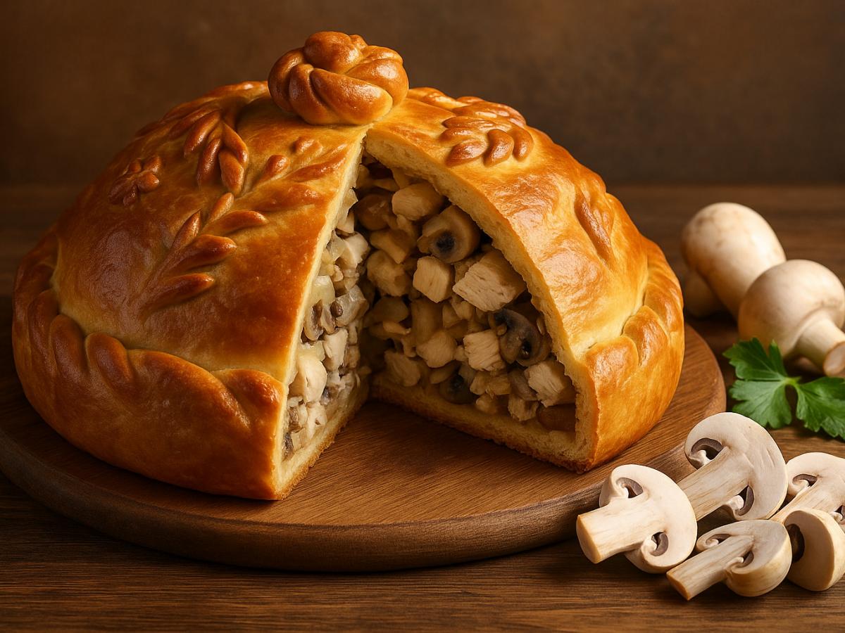 Фото: Generated by AI (DALL·E 3 by OpenAI) is licensed under Free for commercial use (OpenAI License) Курник Секрет идеального курникаГлавная особенность курника — его многослойная начинка. Это не просто мясной пирог, а гармония продуктов, где тесто подчеркивает вкус начинки, а овощи и грибы добавляют сочности. Удобно, что для приготовления можно использовать как свежие, так и замороженные продукты. Шампиньоны подходят идеально, но их легко заменить лисичками или белыми грибами, если хочется добавить благородные нотки.