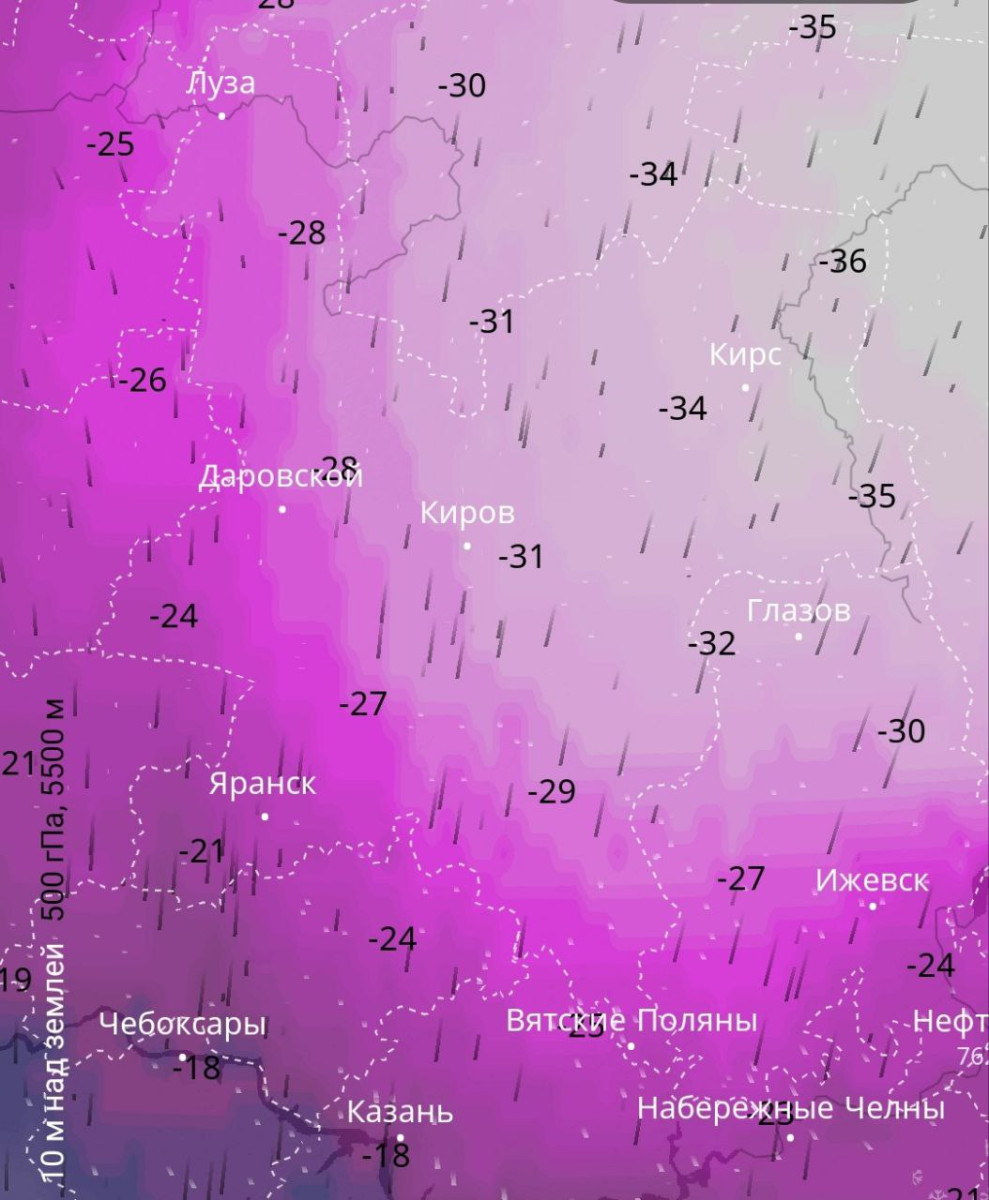 Синоптики предупреждают, что 26 декабря в Кирсе может похолодать до −33 градусов. Такие же температуры ожидаются в Фалёнках и Уни.