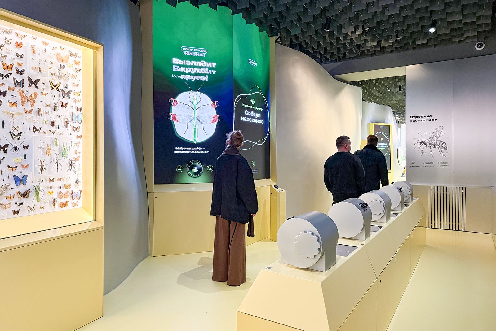 Интерактивная экспозиция «Жужжащий мир» познакомит посетителей с жизнью насекомых, в том числе самой многочисленной группы живых существ на планете — пчел. Помимо фондовых экспонатов, в экспозиции можно увидеть голографические решения, увеличенные модели насекомых, технологии дополненной и виртуальной реальности. На выставке в интерактивном формате можно узнать, как работает пчелиный улей изнутри, научиться определять насекомых по свойственному им жужжанию и создать собственное насекомое при помощи медиаэкрана.