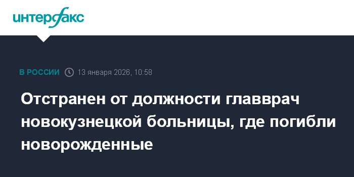 Москва. 13 января. INTERFAX.RU - лавный врач Новокузнецкой городской клинической больнице N1 Виталий Херасков отстранен от должности на время проверки из-за гибели детей в роддоме, сообщил губернатор Кузбасса Илья Середюк во вторник в своем официальном телеграм-канале.