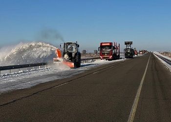 Снегоуборочная техника вышла на дорогу, ведущую к международному мосту между Благовещенском и Хэйхэ. Перевозчиков вновь призывают убрать транспорт с обочин.