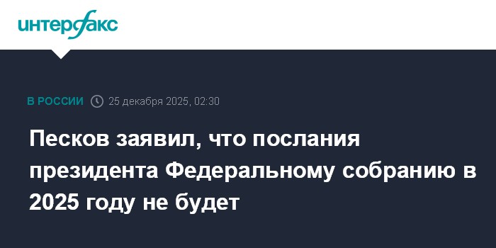 "Решение главы государства, это же его послание", - ответил Песков на вопрос о том, почему послание не будет оглашено в 2025 году.