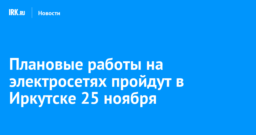 Плановые работы на электросетях пройдут в Иркутске 25 ноября