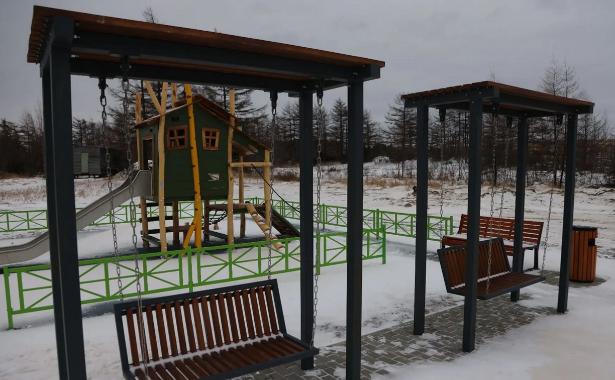 По просьбам жителей в Ногликах благоустроили привокзальную площадь и детскую площадки